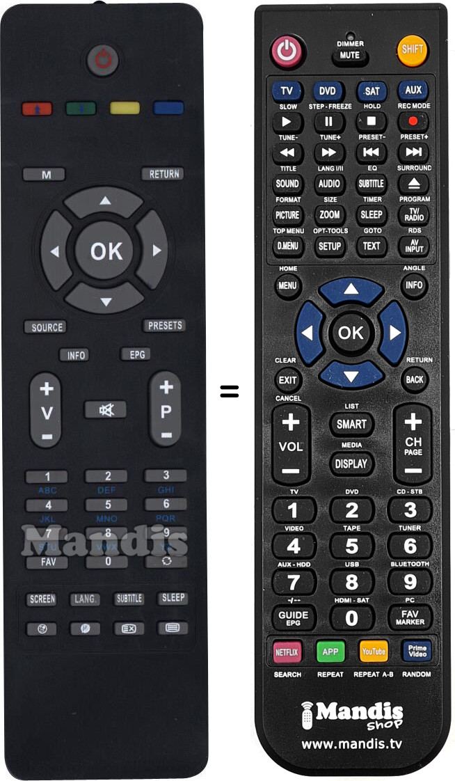 Remote control to replace the original LCDTV22104 (20514712) and all its functions.