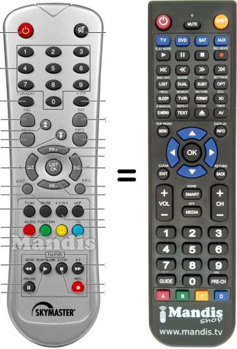 Below, we will show you the correspondence between each button on the original remote control and the button that performs the same function on the replacement remote control. In some cases, you may need to press the SHIFT key before pressing another button to perform certain actions. These additional functions are often not widely used and are included to facilitate understanding of the replacement remote control, or because the original remote control has more buttons than its equivalent.