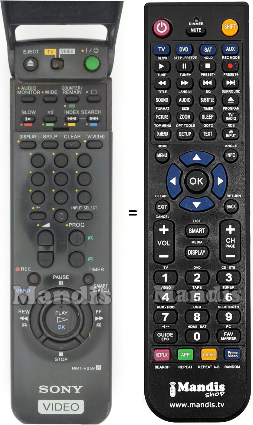 This remote control fully replaces your RMT-V259 and offers all the functions of the original.