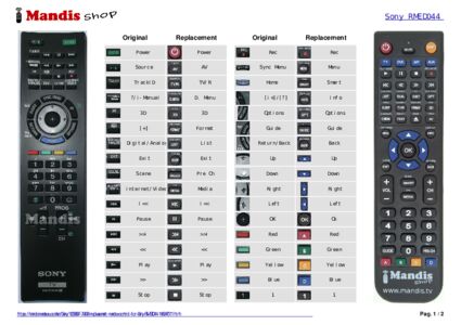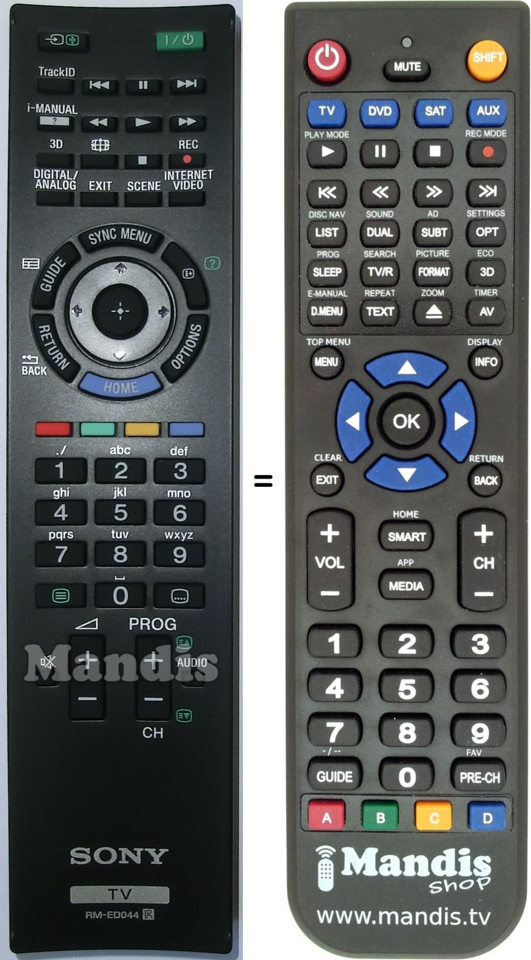 This remote control fully replaces your RM-ED044 (148947511) and offers all the functions of the original.