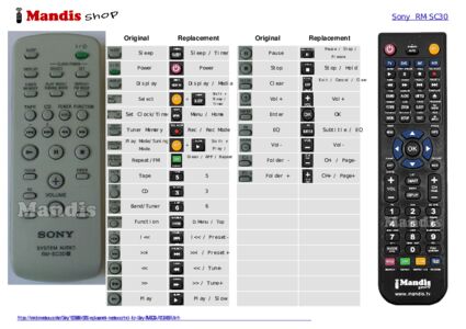 This remote control fully replaces your RM-SC30 (A1108465A) and offers all the functions of the original.