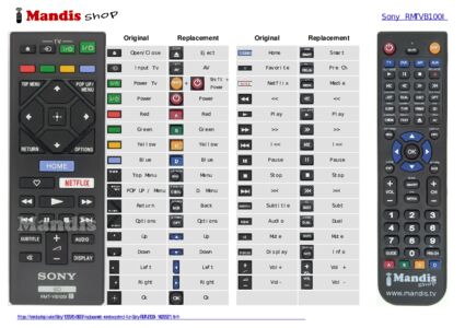 This remote control fully replaces your RMT-VB100I (149290121) and offers all the functions of the original.