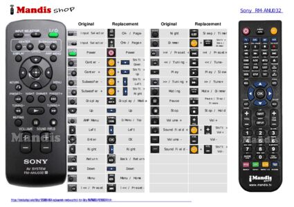 This remote control fully replaces your RM-ANU032 (A1519800A) and offers all the functions of the original.
