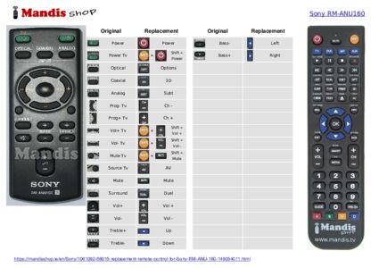 This remote control fully replaces your RM-ANU 160 (149054011) and offers all the functions of the original.