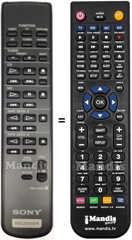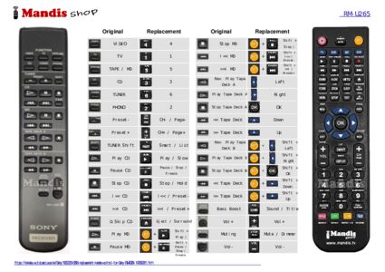 This remote control fully replaces your RM-U265 (147363311) and offers all the functions of the original.