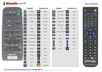 This remote control fully replaces your RM-SR210 (147650311) and offers all the functions of the original.