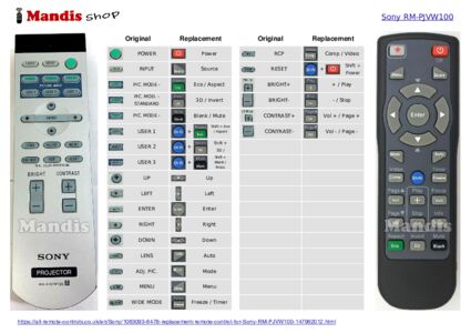 Questions on remote Sony RM-PJVW100 (147962012)