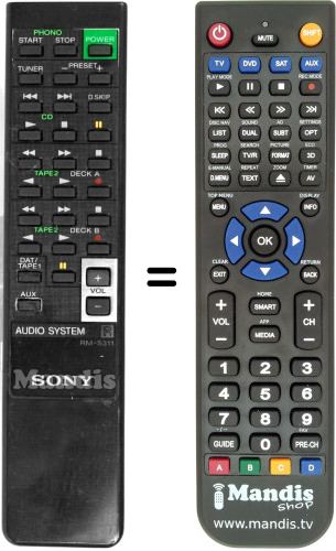 This remote control replaces most of the functions of your RM-S311 (169313111). It is not a universal remote control, but a copy with most of the buttons and functions of your original.