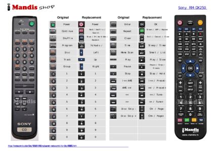 Below, we will show you the correspondence between each button on the original remote control and the button that performs the same function on the replacement remote control. In some cases, you may need to press the SHIFT key before pressing another button to perform certain actions. These additional functions are often not widely used and are included to facilitate understanding of the replacement remote control, or because the original remote control has more buttons than its equivalent.