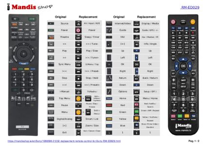 Home > Brands > Remote controls Sony > Remote control for SONY RM ED029 2