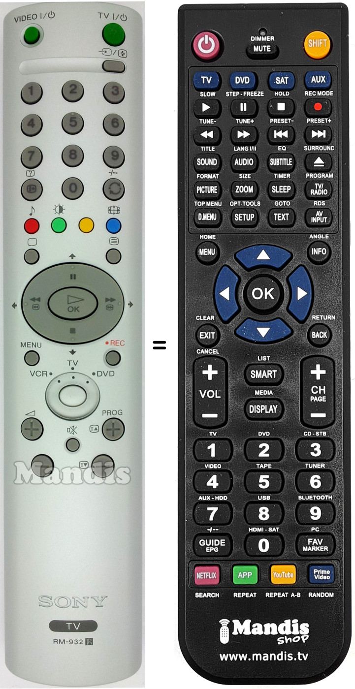 Remote control to replace the original RM 932 (147670212) and all its functions.