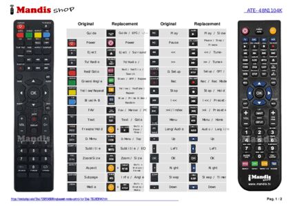 A document is included to help you use the new remote control easily, showing the button correspondence.