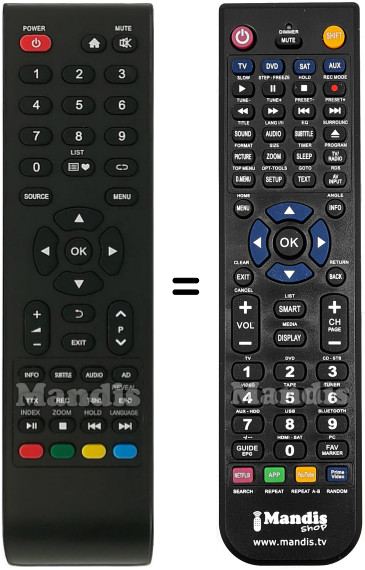 Below, we will show you the correspondence between each button on the original remote control and the button that performs the same function on the replacement remote control. In some cases, you may need to press the SHIFT key before pressing another button to perform certain actions. These additional functions are often not widely used and are included to facilitate understanding of the replacement remote control, or because the original remote control has more buttons than its equivalent.