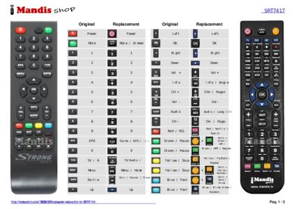 This remote control fully replaces your SRT7417 and offers all the functions of the original.