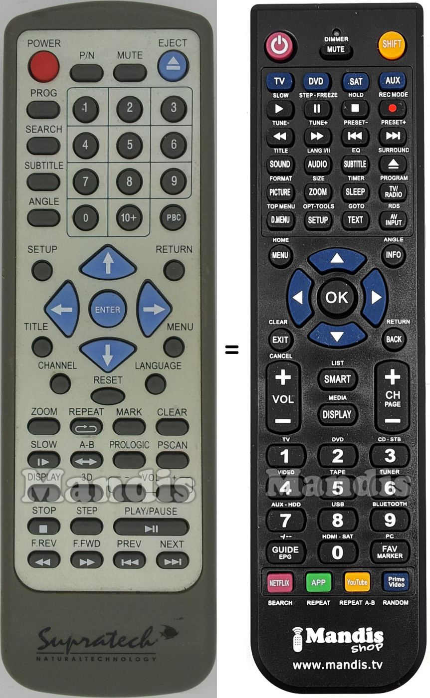 Below, we will show you the correspondence between each button on the original remote control and the button that performs the same function on the replacement remote control. In some cases, you may need to press the SHIFT key before pressing another button to perform certain actions. These additional functions are often not widely used and are included to facilitate understanding of the replacement remote control, or because the original remote control has more buttons than its equivalent.