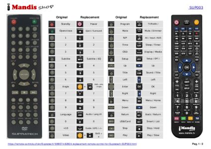 This remote control fully replaces your SUP003 and offers all the functions of the original.