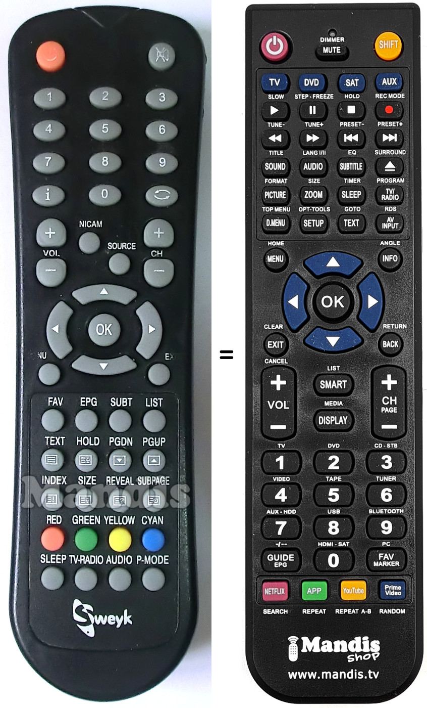 Remote control to replace the original and all its functions.