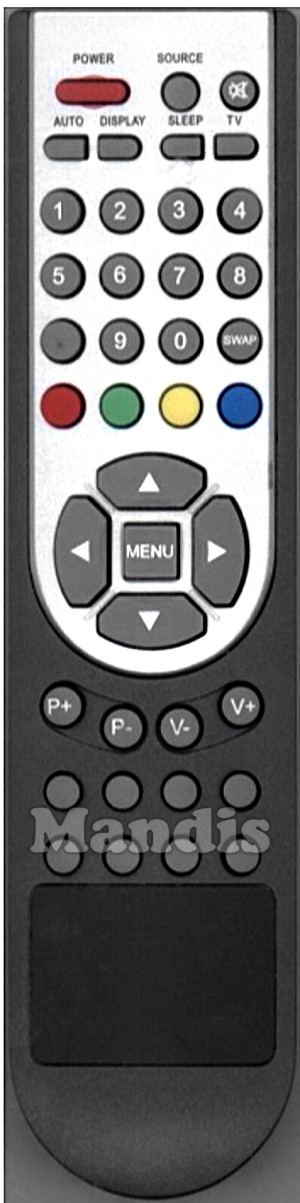 Power, Source, Mute, Auto, Display, Sleep, TV, 1, 2, 3, 4, 5, 6, 7, 8, 9, 0, Swap, , Red, Green, Yellow, Blue, Up, Left, Menu, Right, Down, P+, P-, V-, V+, , , , , , , ,