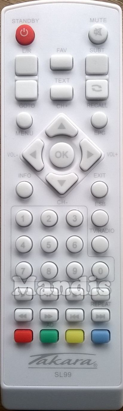 original remote control SL99 used for tdt/sat for the brand TAKARA. This is an original remote control.
