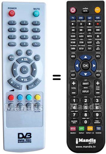 Below, we will show you the correspondence between each button on the original remote control and the button that performs the same function on the replacement remote control. In some cases, you may need to press the SHIFT key before pressing another button to perform certain actions. These additional functions are often not widely used and are included to facilitate understanding of the replacement remote control, or because the original remote control has more buttons than its equivalent.