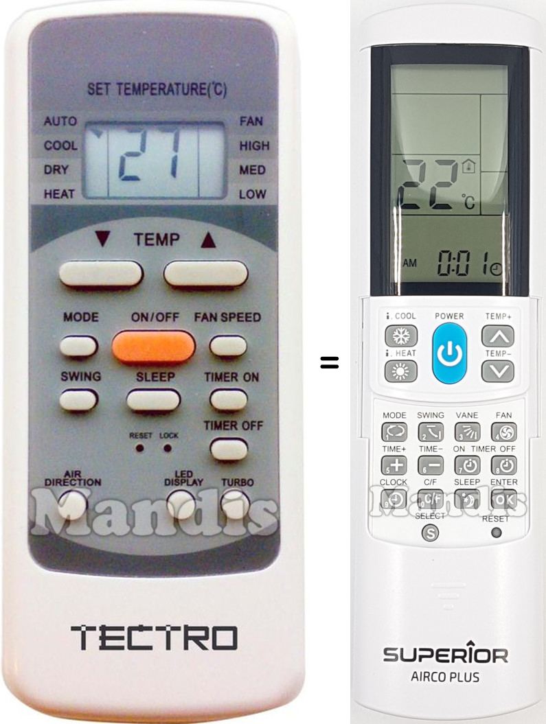 My LG air-conditioner's remote died and need replacement. AircoPlus did the job. I should point out that the code match did not correspond according to manufacturer's table. Let the auto-search code set up do the work. Also, excellent service by Mandis Remotes with a well-protected package.