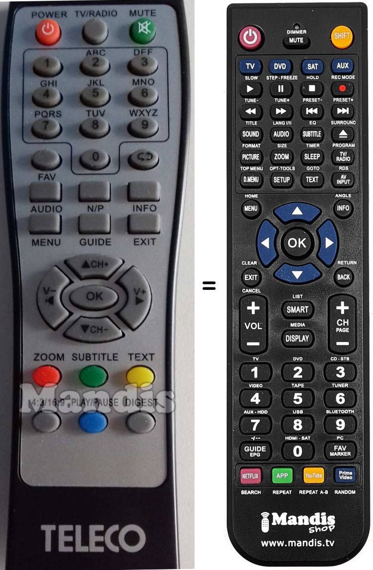 Remote control to replace the original remote RDT1000CPVR and all its functions.