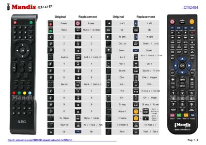 A document is included to help you use the new remote control easily, showing the button correspondence.