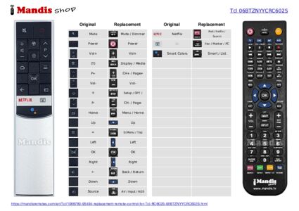 When we send the remote control, we also send a document with the correspondence of the keys between the replacement and the original remote controls which allows you to know how to perform the functions of the original remote. Sometimes it is available on the web so you can download it.