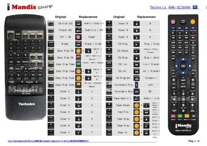 Below, we will show you the correspondence between each button on the original remote control and the button that performs the same function on the replacement remote control. In some cases, you may need to press the SHIFT key before pressing another button to perform certain actions. These additional functions are often not widely used and are included to facilitate understanding of the replacement remote control, or because the original remote control has more buttons than its equivalent.
