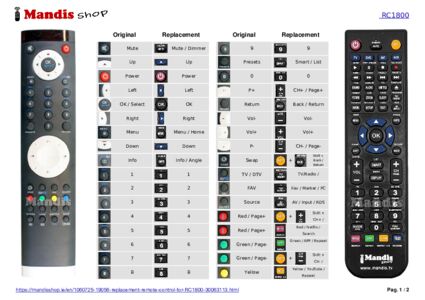 This remote control fully replaces your RC1800 (30063113) and offers all the functions of the original.