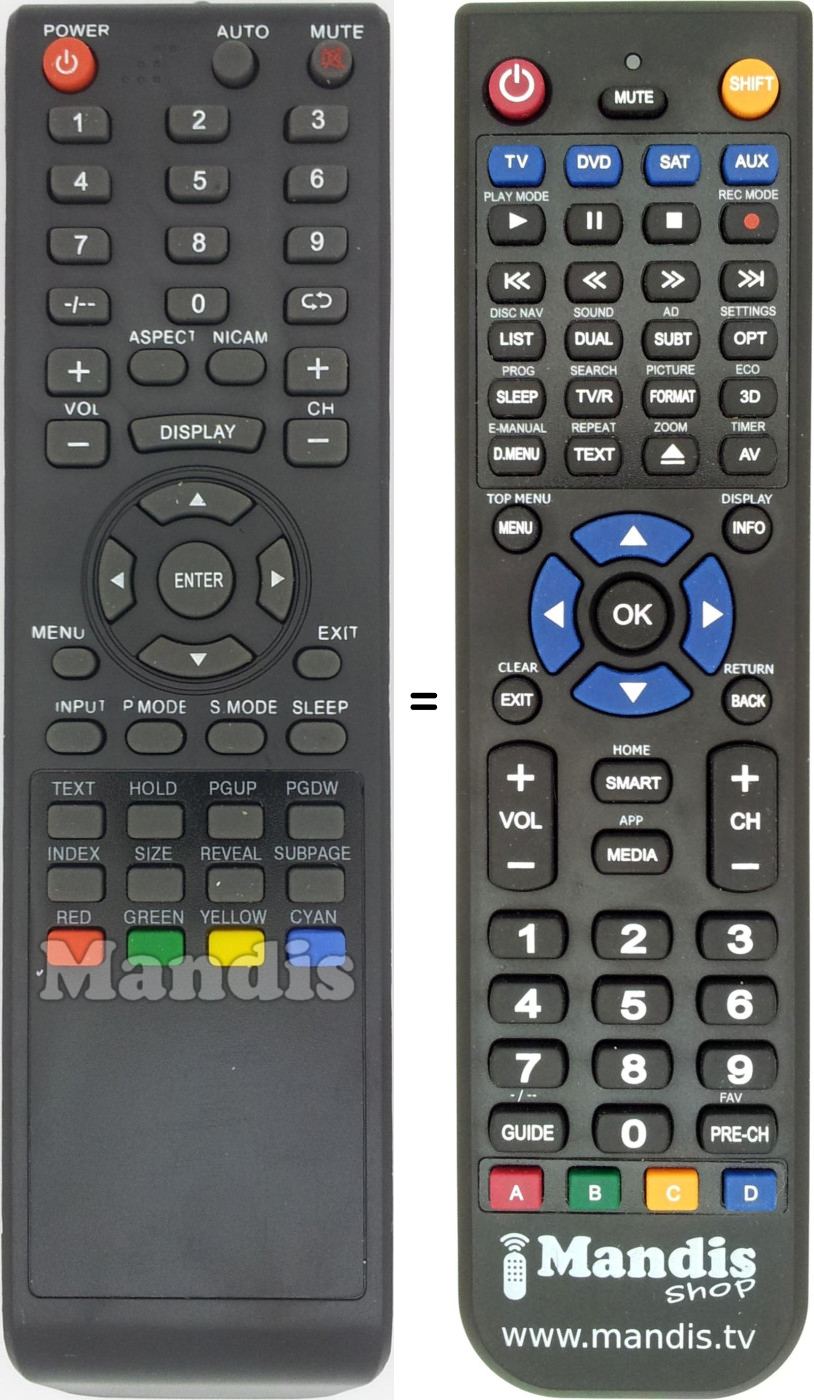 This remote control performs all the functions of the original remote control: