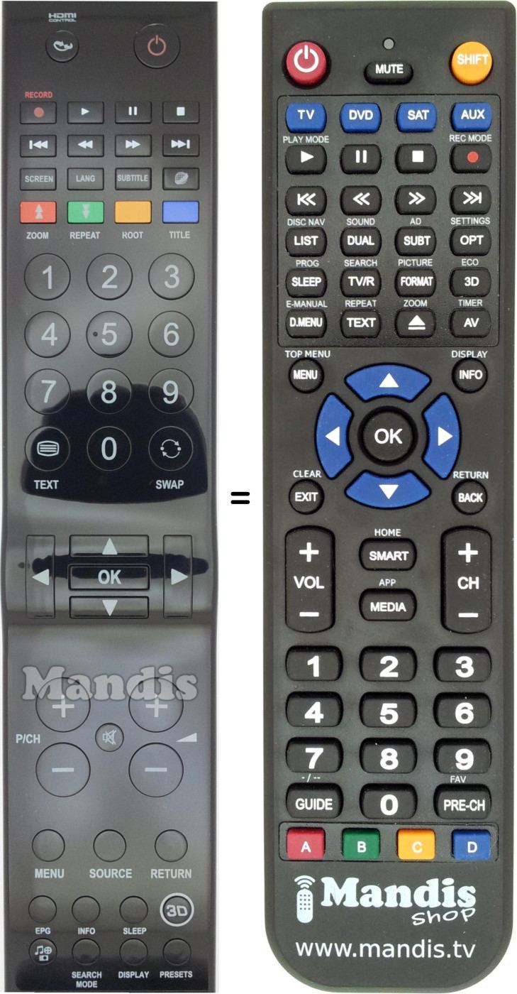 Below, we will show you the correspondence between each button on the original remote control and the button that performs the same function on the replacement remote control. In some cases, you may need to press the SHIFT key before pressing another button to perform certain actions. These additional functions are often not widely used and are included to facilitate understanding of the replacement remote control, or because the original remote control has more buttons than its equivalent.