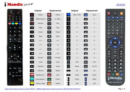 A document is included to help you use the new remote control easily, showing the button correspondence.