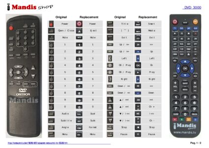 Below, we will show you the correspondence between each button on the original remote control and the button that performs the same function on the replacement remote control. In some cases, you may need to press the SHIFT key before pressing another button to perform certain actions. These additional functions are often not widely used and are included to facilitate understanding of the replacement remote control, or because the original remote control has more buttons than its equivalent.