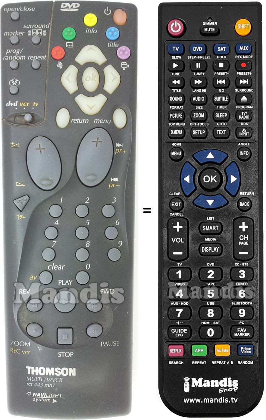 This remote control fully replaces your RCT443MN1 and offers all the functions of the original.