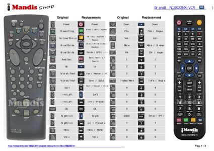 Below, we will show you the correspondence between each button on the original remote control and the button that performs the same function on the replacement remote control. In some cases, you may need to press the SHIFT key before pressing another button to perform certain actions. These additional functions are often not widely used and are included to facilitate understanding of the replacement remote control, or because the original remote control has more buttons than its equivalent.
