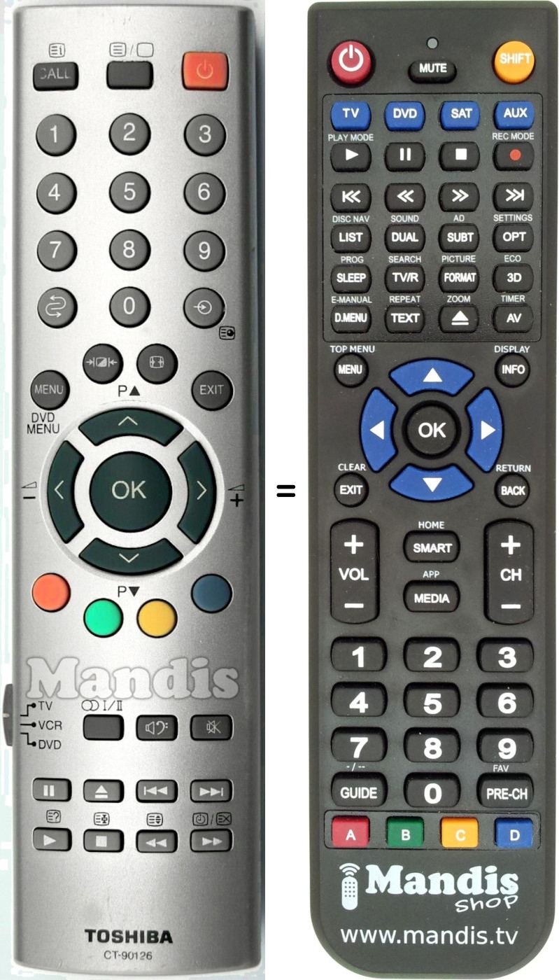 This remote control fully replaces your CT-90126 and offers all the functions of the original.