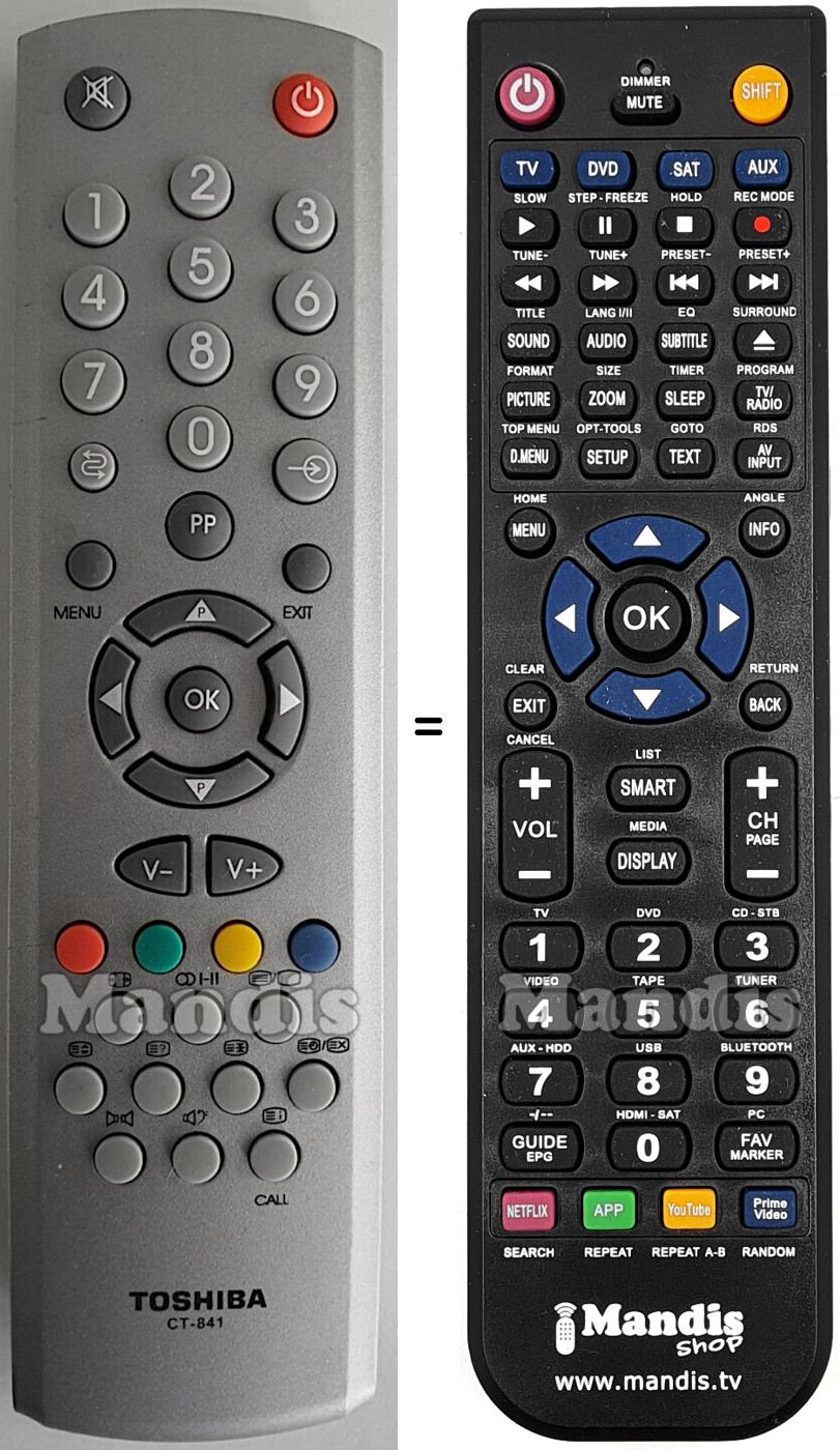 This remote control fully replaces your CT-841 (V20100980) and offers all the functions of the original.