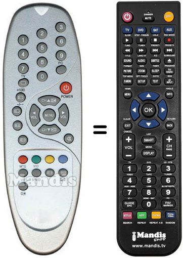 Remote control to replace the original and all its functions.