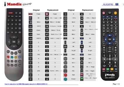 1. Look at the images of the two remote controls: the original (left) and the replacement (right).