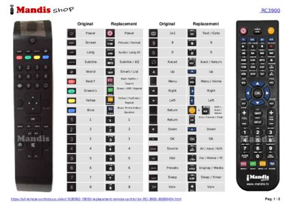 Below, we will show you the correspondence between each button on the original remote control and the button that performs the same function on the replacement remote control. In some cases, you may need to press the SHIFT key before pressing another button to perform certain actions. These additional functions are often not widely used and are included to facilitate understanding of the replacement remote control, or because the original remote control has more buttons than its equivalent.