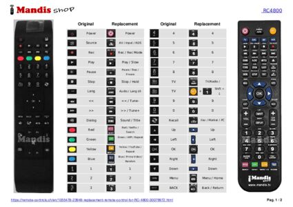 Below, we will show you the correspondence between each button on the original remote control and the button that performs the same function on the replacement remote control. In some cases, you may need to press the SHIFT key before pressing another button to perform certain actions. These additional functions are often not widely used and are included to facilitate understanding of the replacement remote control, or because the original remote control has more buttons than its equivalent.