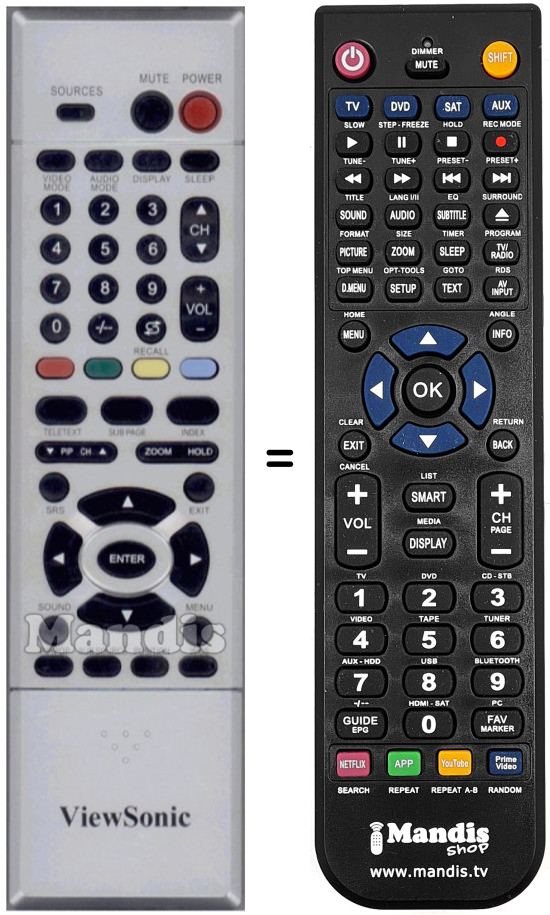 Remote control to replace the original and all its functions.