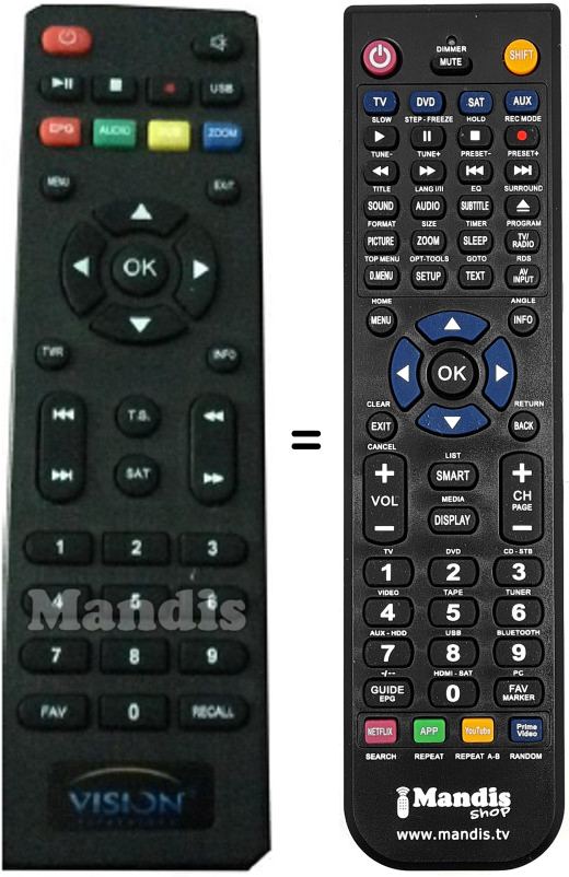 Remote control to replace the original and all its functions.
