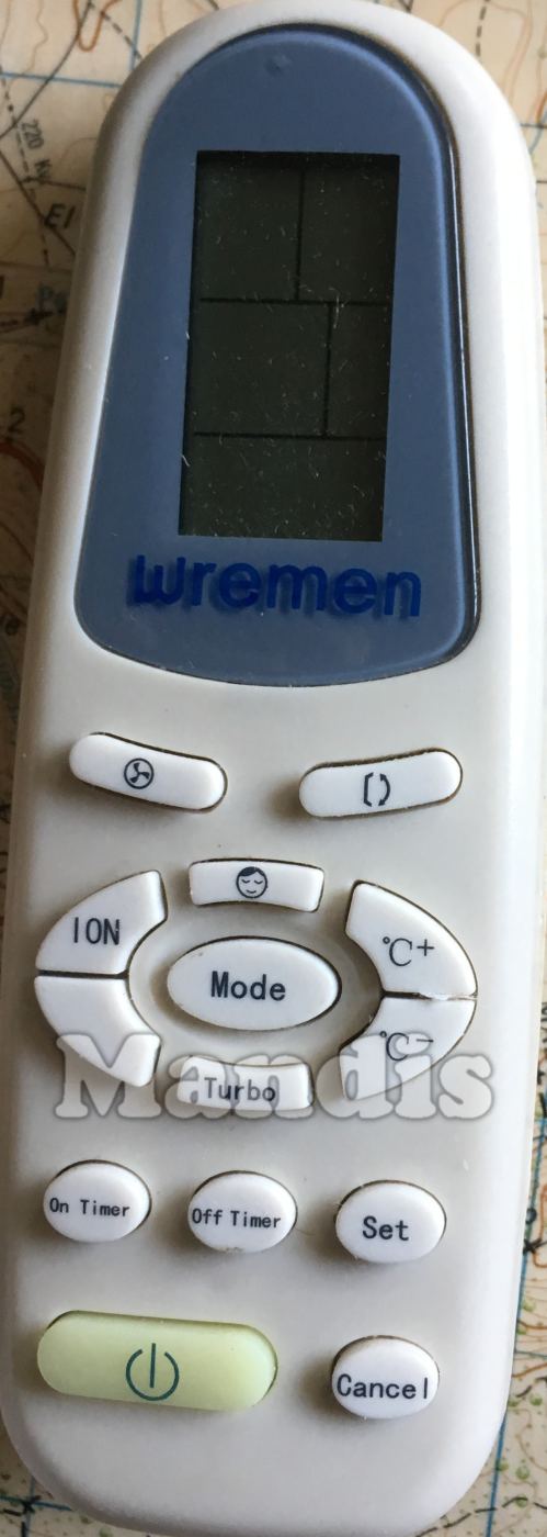 original remote control WRE001 used for air conditioners for the brand WREMEN. This is an original remote control.