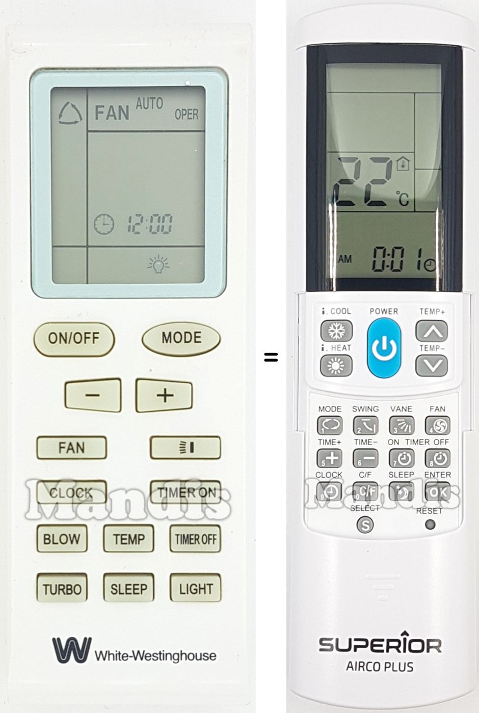 My LG air-conditioner's remote died and need replacement. AircoPlus did the job. I should point out that the code match did not correspond according to manufacturer's table. Let the auto-search code set up do the work. Also, excellent service by Mandis Remotes with a well-protected package.