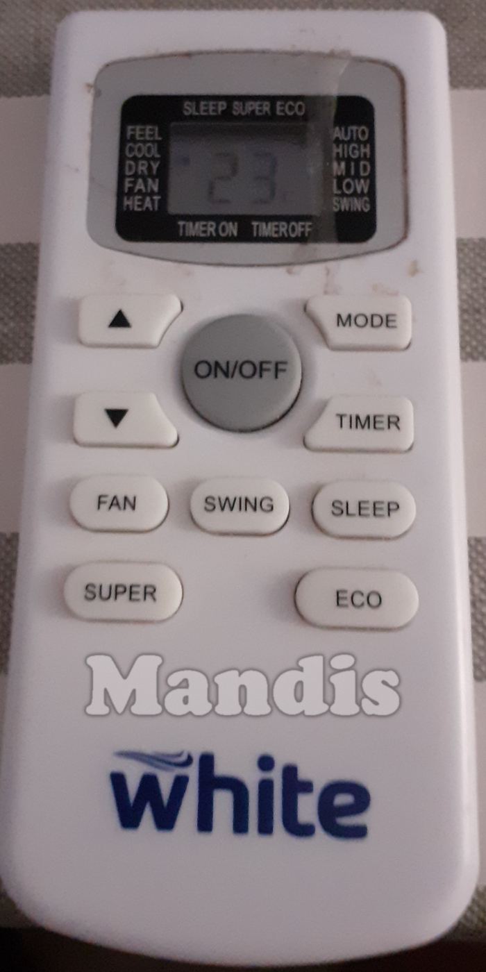 original remote control WHITE001 used for air conditioners for the brand White. This is an original remote control.