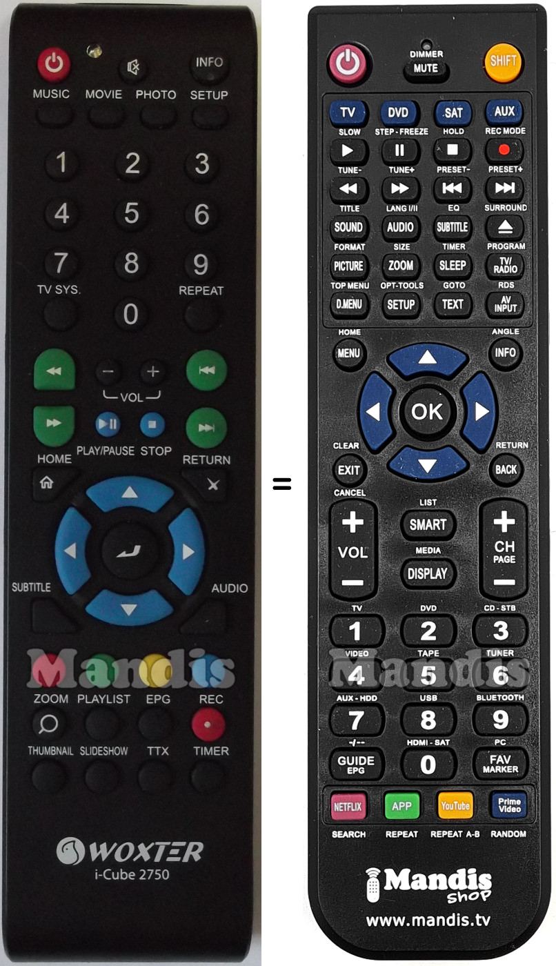 This remote control fully replaces your ICube2750 and offers all the functions of the original.