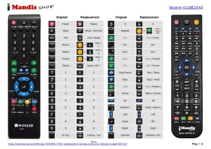 Below, we will show you the correspondence between each button on the original remote control and the button that performs the same function on the replacement remote control. In some cases, you may need to press the SHIFT key before pressing another button to perform certain actions. These additional functions are often not widely used and are included to facilitate understanding of the replacement remote control, or because the original remote control has more buttons than its equivalent.