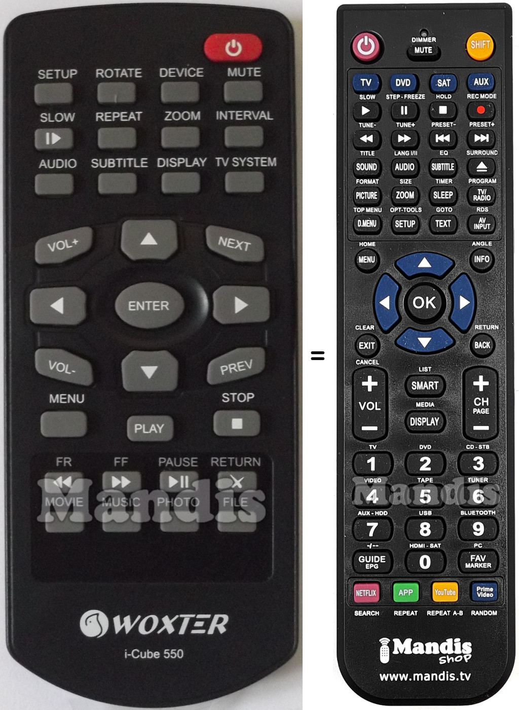 This remote control fully replaces your ICube550 and offers all the functions of the original.